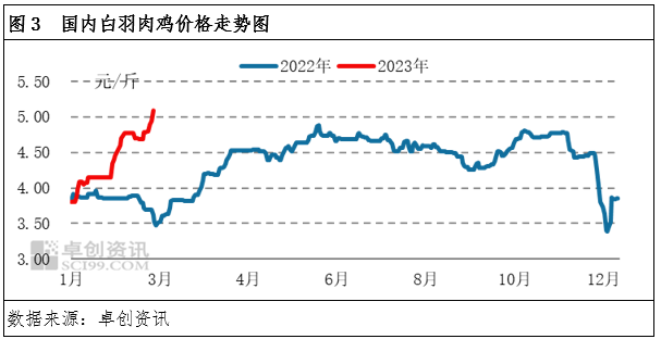 【卓創資訊】肉雞月評:白羽肉雞價格全線上行 817小白雞市場運行強勢(2023年2月)